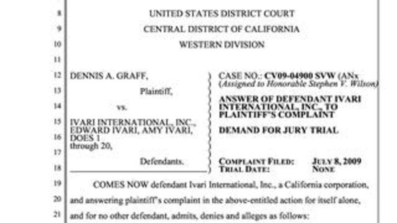 Ivari International, Inc.'s Response to Dennis Graff's ComplaintAshley Feinberg5/23/16 3:56pmEditPromoteDismissUndismissHideShare to KinjaGo to permalink Ashley Feinbergashley@gawker.com@ashleyfeinbergSenior Writer at GawkerPGP Fingerprint: 1B2B 2229 8096 1A6E 7744 8847 F32A CCC5 1E69 7FED|PGP KeyReplyLeave a reply