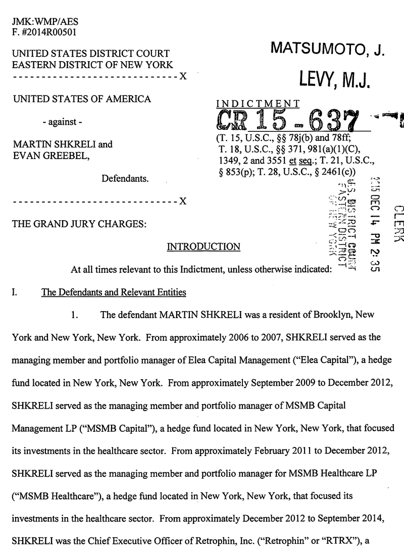 The Full Text of Martin Shkreli’s Federal IndictmentJ.K. Trotter12/17/15 3:45pmFiled to: martin shkreliindictment1EditPromoteDismissUndismissHideShare to KinjaGo to permalink ReplyLeave a reply